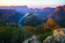 Enjoy the view into one of the largest canyons on Earth, Blyde River Canyon, possibly the largest “green canyon” due to its lush subtropical foliage, known to be one of the great wonders of nature on the African continent. This canyon is part of the Panorama route in the in dramatic Drakensberg mountains, which is the highest mountain range in Southern Africa, rising to 3,482 metres (11,424 ft) in height.